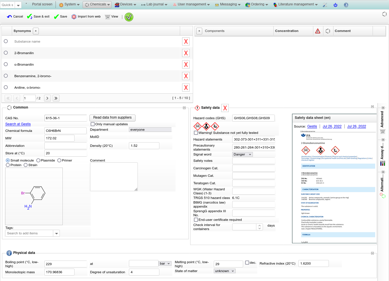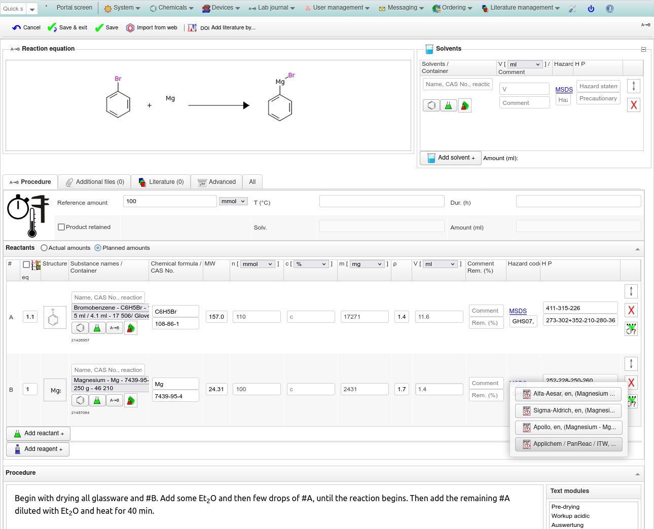 Chemists take advantage of the automated calculation of amounts, the integrated chemical inventory or useful data processing tools.