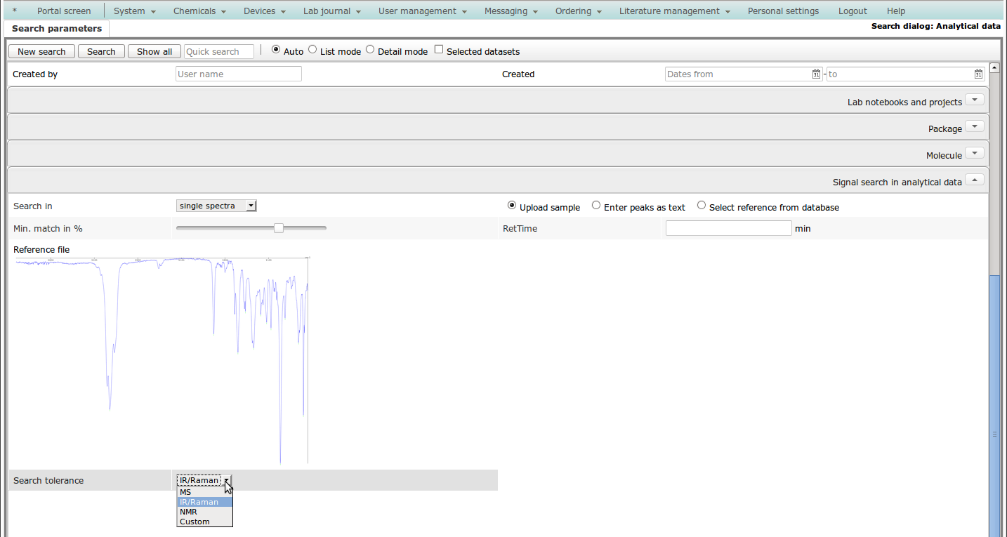 Forensic scientists can search the database for similar spectral patterns, exhibits can be stored in tailor-made forms.