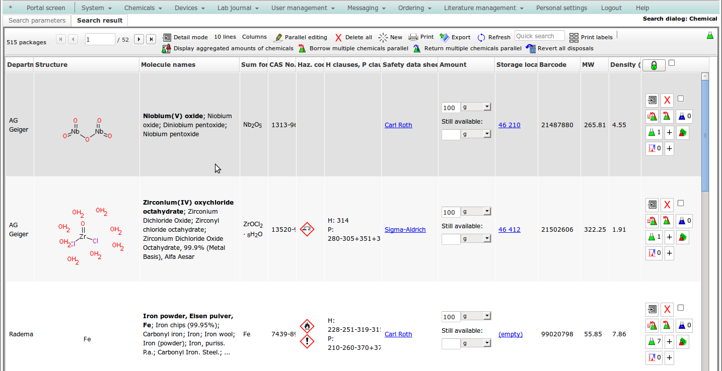• open enventory is designed for smaller chemical research groups and has gained worldwide popularity.