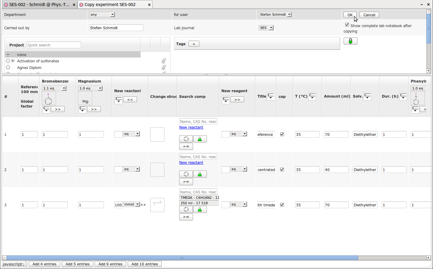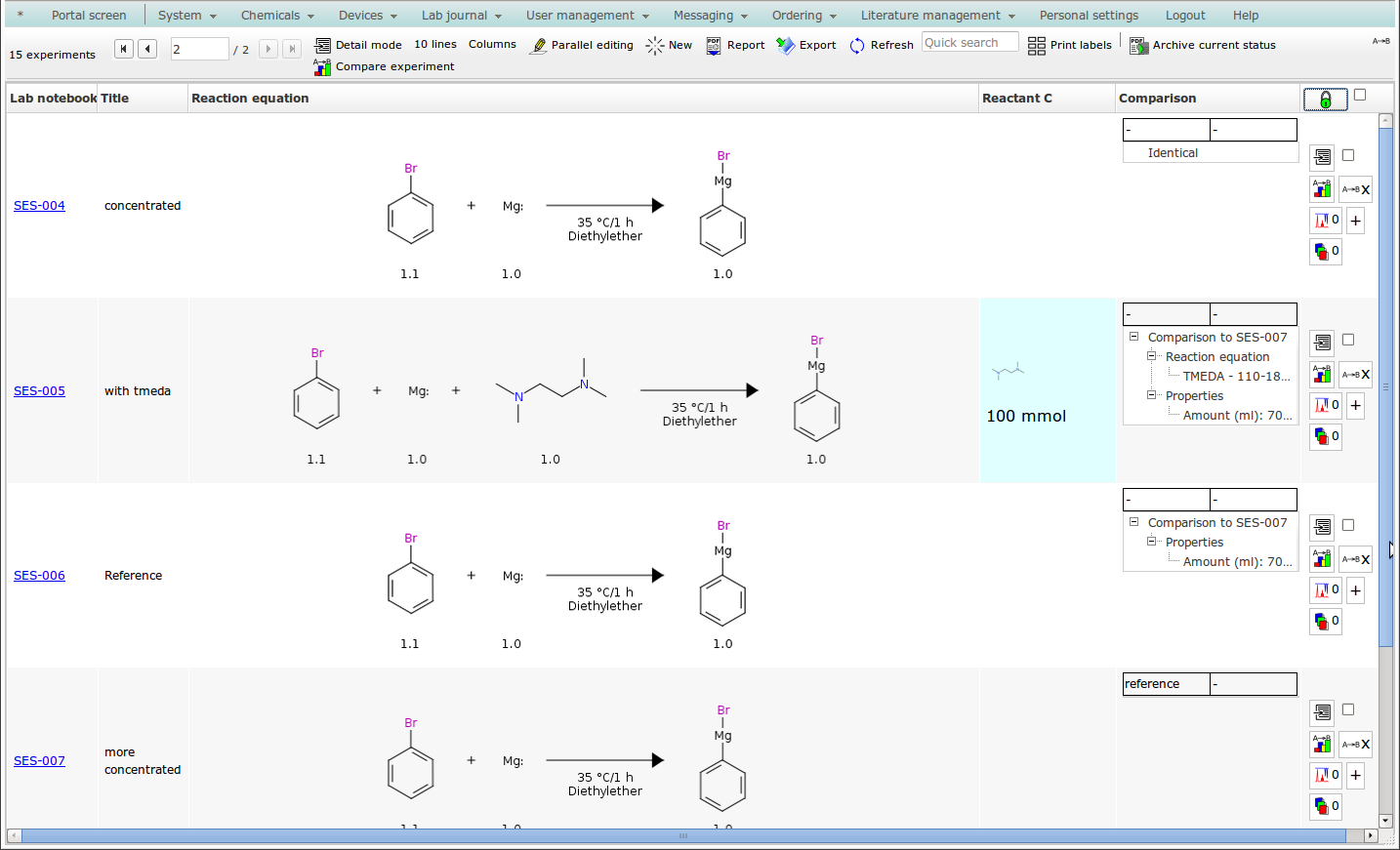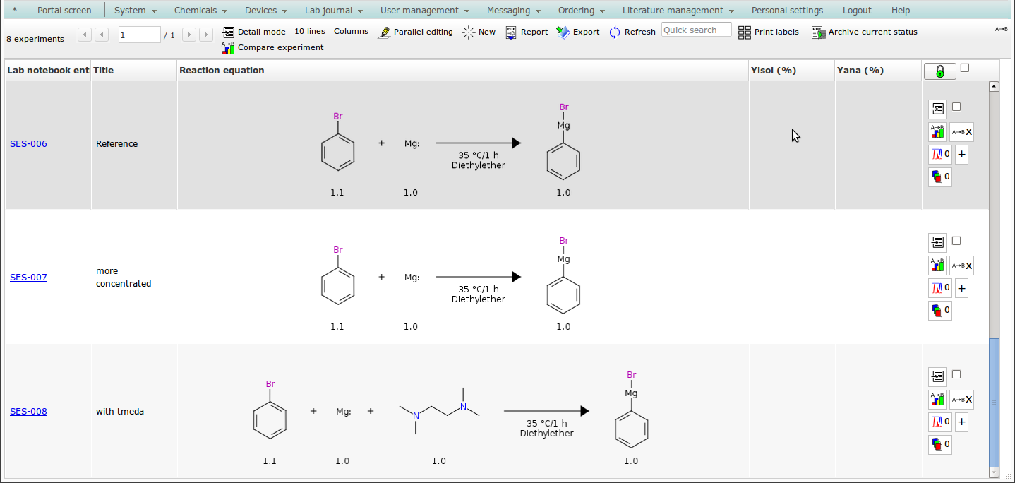 ![]() | based on existing entries, series of similar experiments can quickly be planned, | ![]() | ![]() |