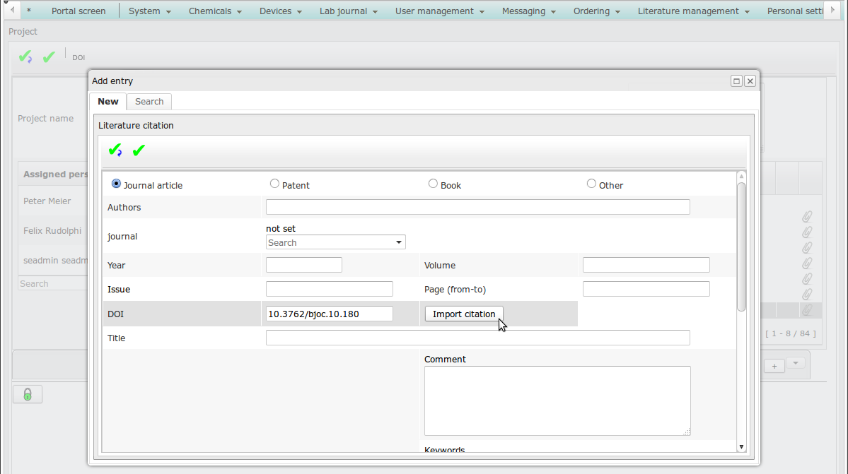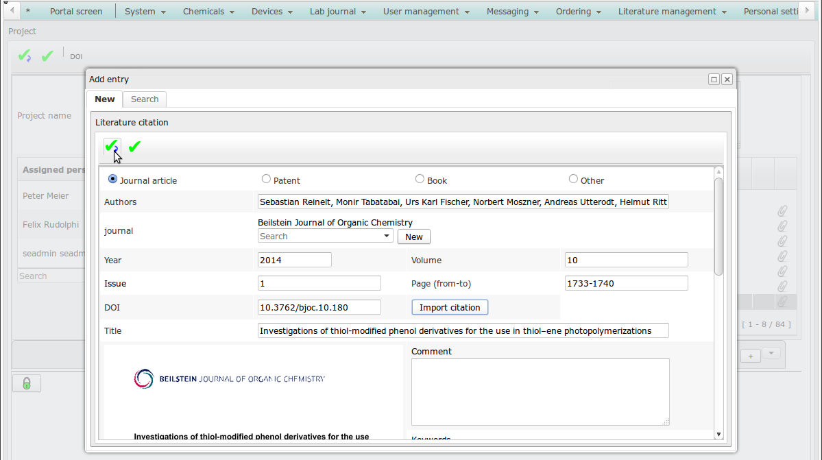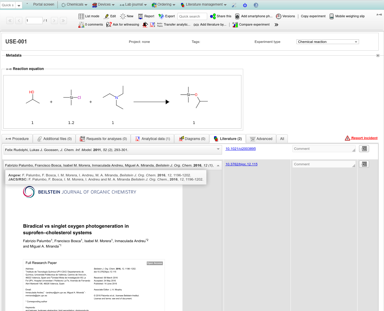 | Most of our research builds on top of others' findings. At the beginning of a new research project, we usually find ourselves in the library. Thus, including the relevant literature in an ELN entry can play a key role in making an experiment transparent to someone else – apart from convenience aspects for the reader. | |