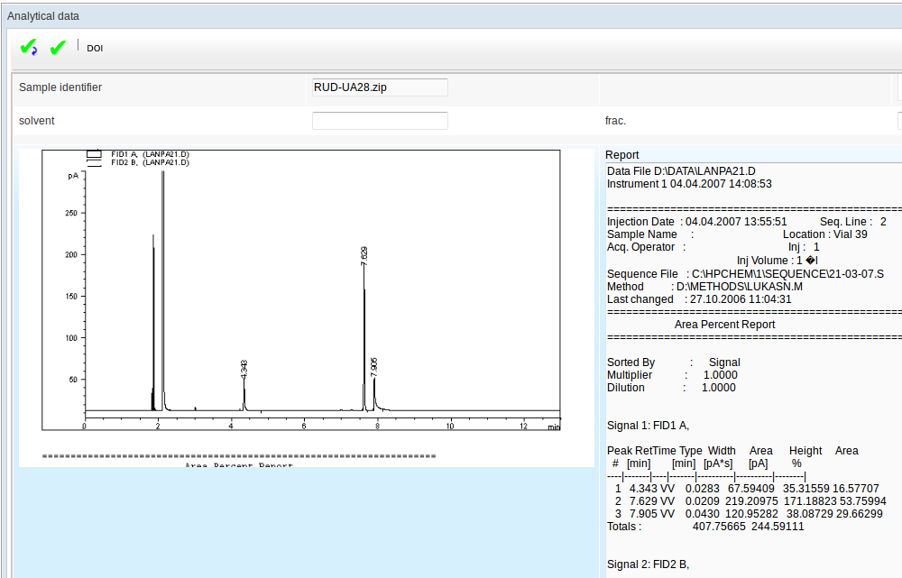 | Metrohm MagIC Net (ion chromatography) | ![]() | peak list |