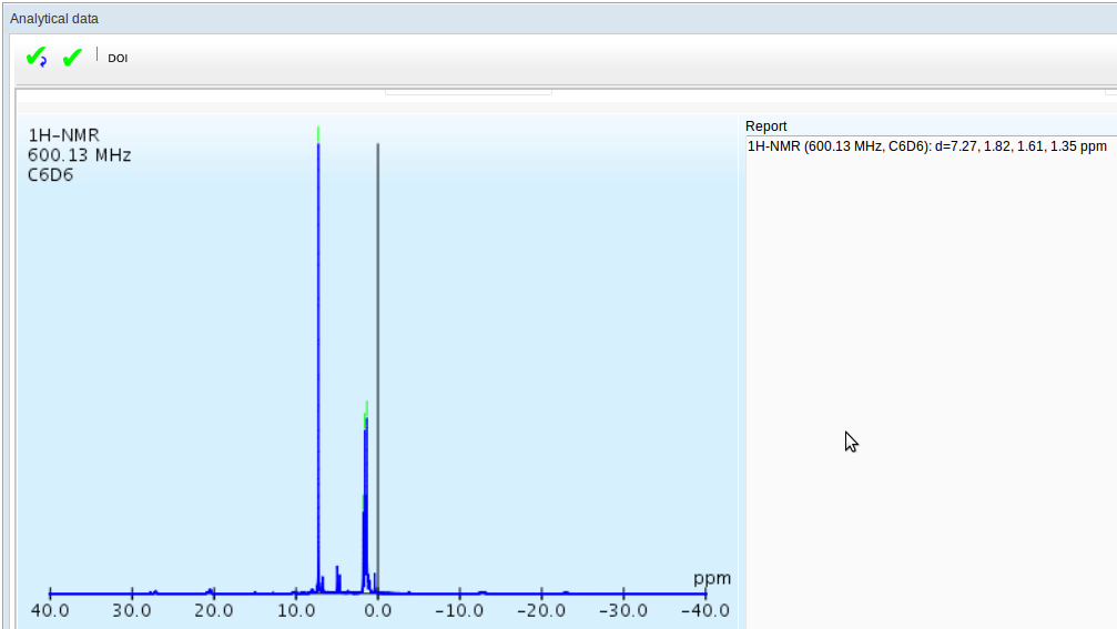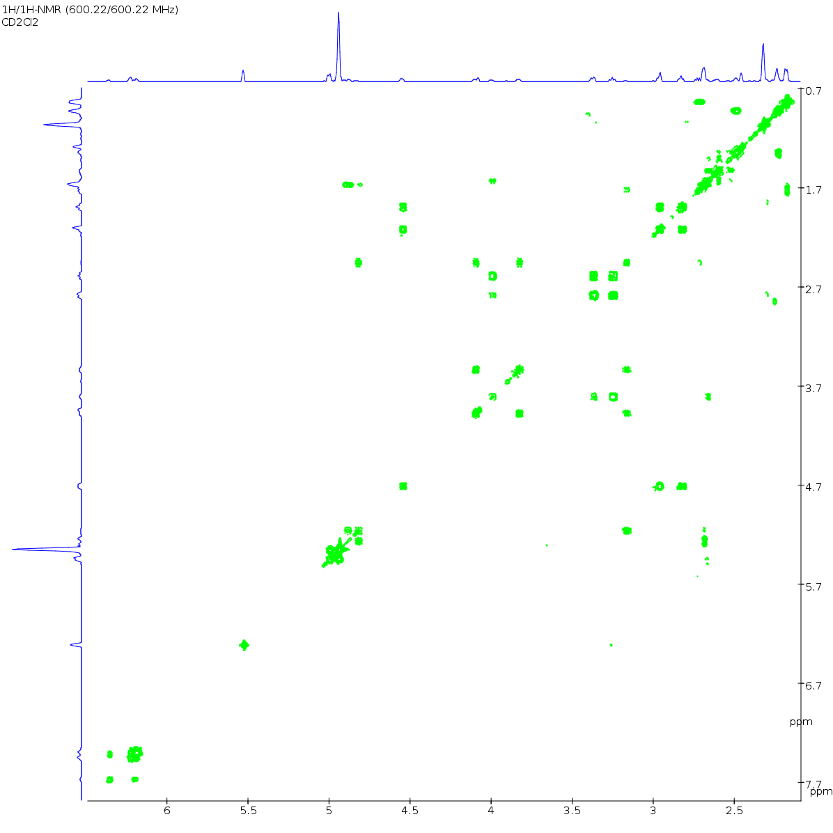 | JEOL (in Anlehnung an diese Bibliothek, 2D-NMR experimentell) | ![]() Beispieldatei von S. B. Kim et al., https://doi.org/10.7910/DVN/ZAZDNM, CC0 | Peakliste |
