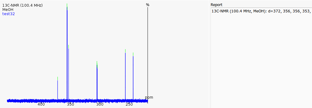 | JCAMP-Dateien (unter Verwendung dieser Bibliothek, auch 2D-NMR) | ![]() | Peakliste |