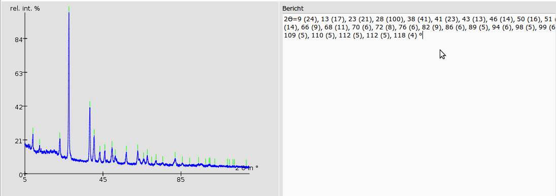 | Bruker SPX | ![]() | Graph, Elementliste, ggf. Quantifizierung |
