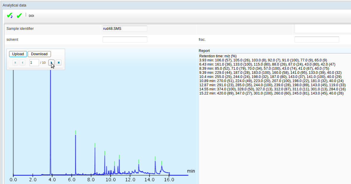 | Varian SMS | ![]() ![]() | peak list with mass spectra |