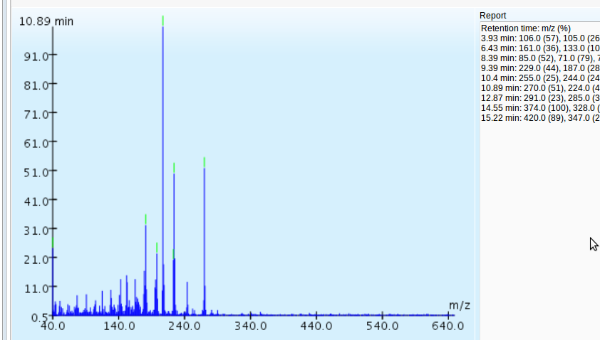 | Agilent Chemstation | ![]() | Peakliste mit Massen |
